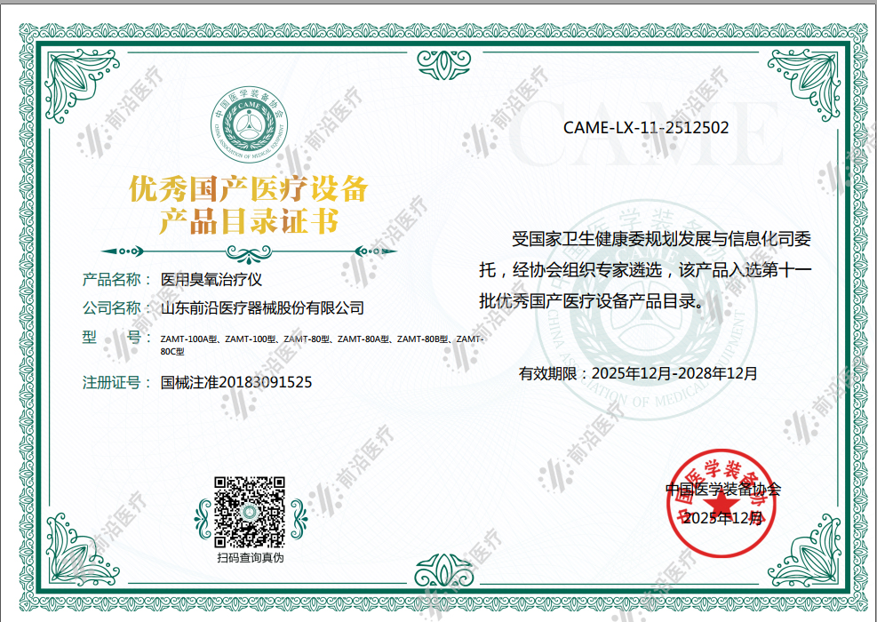 祝賀前沿醫(yī)療6款醫(yī)用臭氧治療儀,成功入選中國(guó)醫(yī)學(xué)裝備協(xié)會(huì)評(píng)選的第十一批優(yōu)秀國(guó)產(chǎn)醫(yī)療設(shè)備名單!這是繼2020年11月,公司研發(fā)生產(chǎn)的內(nèi)熱式針灸治療儀入選《第九批優(yōu)...